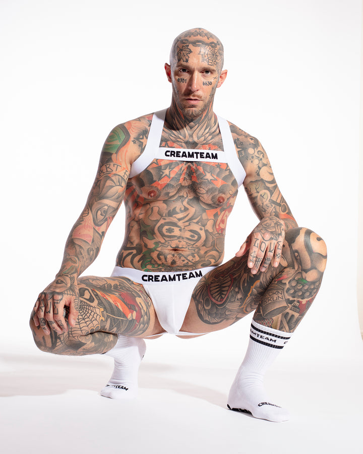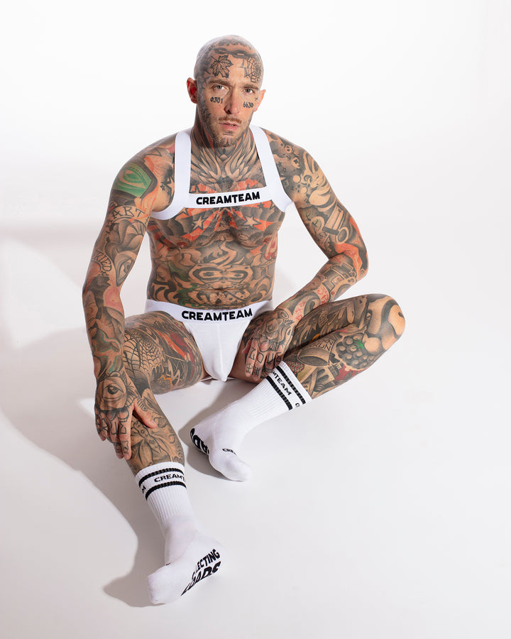 Playful, provocative, and built to stand out—the Classic Jock Loads, Harness & Loads Sock set in white is your all-in-one power combo. With a bold graphic pouch, matching chest-framing straps, and cheeky socks to complete the look, this trio delivers comfort, style, and pure attitude.